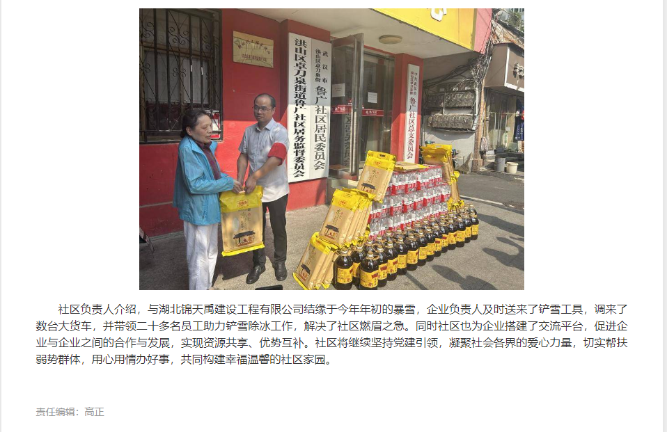 原文链接:湖北日报《“爱”的双向奔赴,洪山企业善举频施,切实帮扶社区弱势群体》