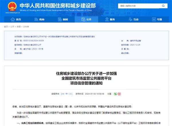 相关网络截图:相关网络链接:住房城乡建设部办公厅关于进一步加强全国建筑市场监管公共服务平台项目信息管理的通知