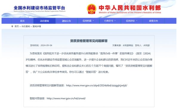 相关网络截图:相关网络链接:水利水电工程施工总承包特级、一级资质和专业承包一级资质行业审查常见问题解答