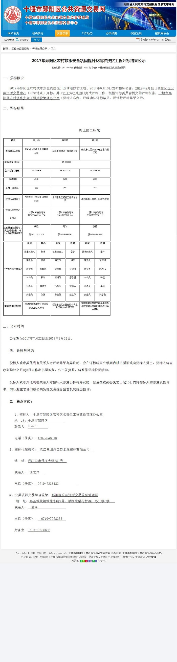 热烈庆祝湖北锦天禹公司中标承建2017年郧阳区农村饮水安全巩固提升及精准扶贫工程第二标段