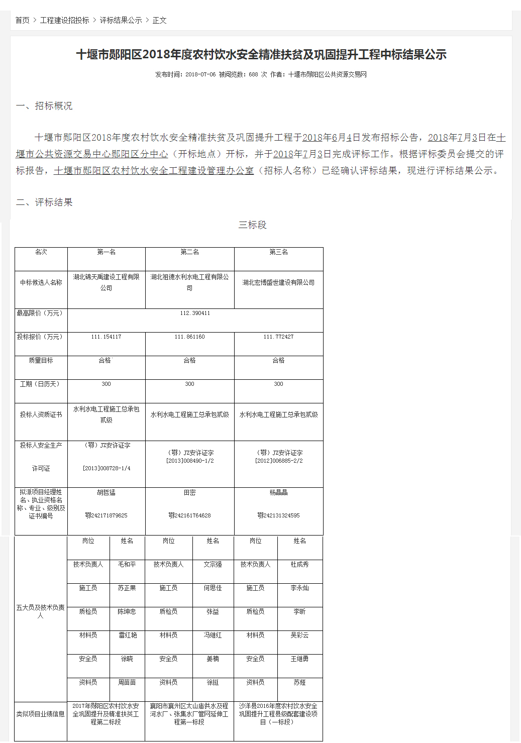 项目名称:十堰市郧阳市2018年度农村饮水安全精准扶贫及巩固提升工程