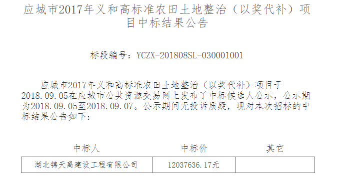 项目名称:应城市2017年义和高标准农田土地整治(以奖代补)