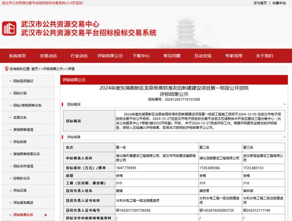 项目名称:2024年度东湖高新区龙泉街高标准农田新建建设项目第一标段招标编码:202412051719101268招 标 人:武汉光谷中华科技园投资有限公司相关网络截图:相关网络链接:2024年度东湖高新区龙泉街高标准农田新建建设项目第一标