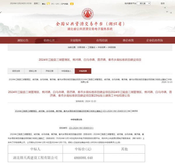 项目名称:2024年江陵县三湖管理区、熊河镇、白马寺镇、普济镇、秦市乡高标准农田建设项目第23标段招标编码:JZJI-202411NY-004001011招 标 人:江陵县农田建设服务中心相关网络截图:相关网络链接:2024年江陵县三湖管理