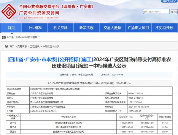 项目名称:2024年广安区财政转移支付高标准农田建设项目(新建)一 招标编码:51160120240731GC0328招 标 人: 广安市广安区农业农村局相关网络截图:相关网络链接:2024年广安区财政转移支付高标准农田建设项目(