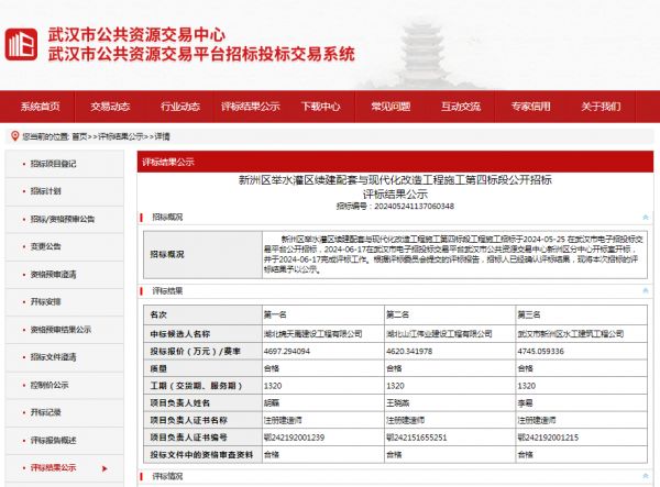 查看更多 +项目名称:黄陂区武湖二泵站渠系配套工程(一期)施工招标编号:202005191606320735招标人:武汉市黄陂区水务和湖泊局相关网络截图:相关原文链接:黄陂区武湖二泵站渠系配套工程(一期)施工中标公示