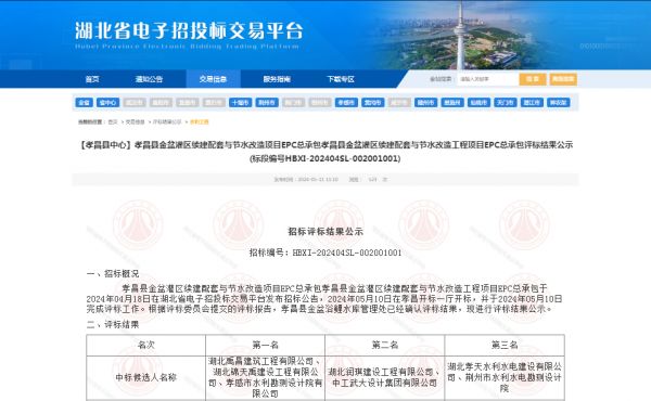 项目名称:孝昌县金盆灌区续建配套与节水改造工程项目EPC总承包招标编码:HBXI-202404SL-002001001招标人:孝昌县金盆浴鲤水库管理处相关网络截图:相关网络链接:孝昌县金盆灌区续建配套与节水改造工程项目EPC总承包评标结果公